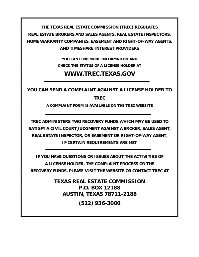 TREC Consumer Protection & IABS Information